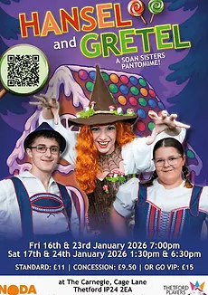 Thetford Players present their 2026 pantomime, Hansel and Gretel, written and directed by sisters Frankie Soan and Maddie Stebbings.